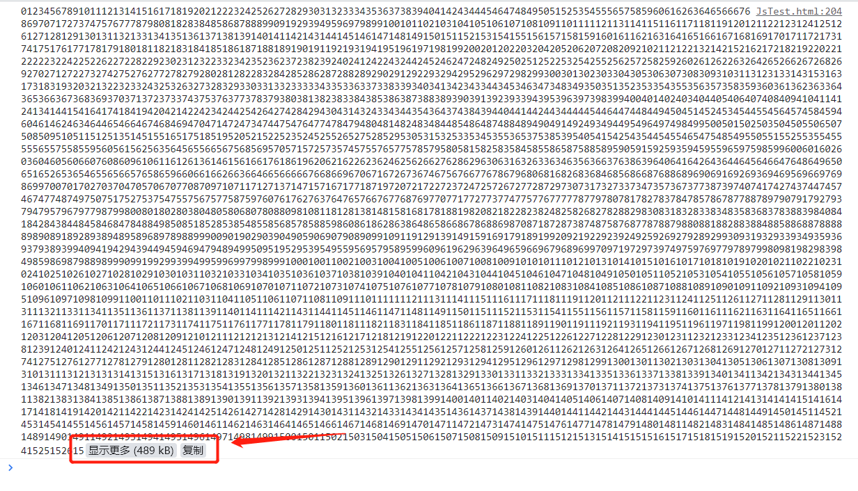 console.log(str); //这个结果需要划分大量时间来显示,因为需要不断的开辟新的空间