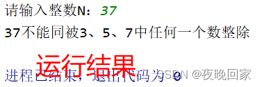 5. 以上所有的条件都不满足,显示“不能被3、5、7中任何一个数整除”。