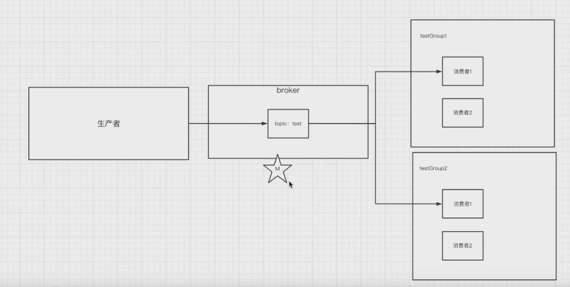 左上是生产者,下面2个是消费者,都是一个消费组,所以只有一个接到了消息