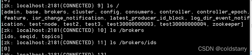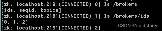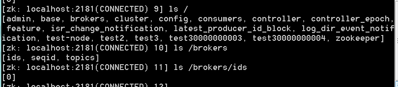看下ZK数据,KAFKA在ZK上新建了一些节点