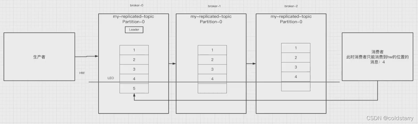 如下图, 对于每个Topic都有一个ISR列表,直接取ISR列表的第一个作为leader,如果当前挂的就是第一个,则选择后面一个作为leader。