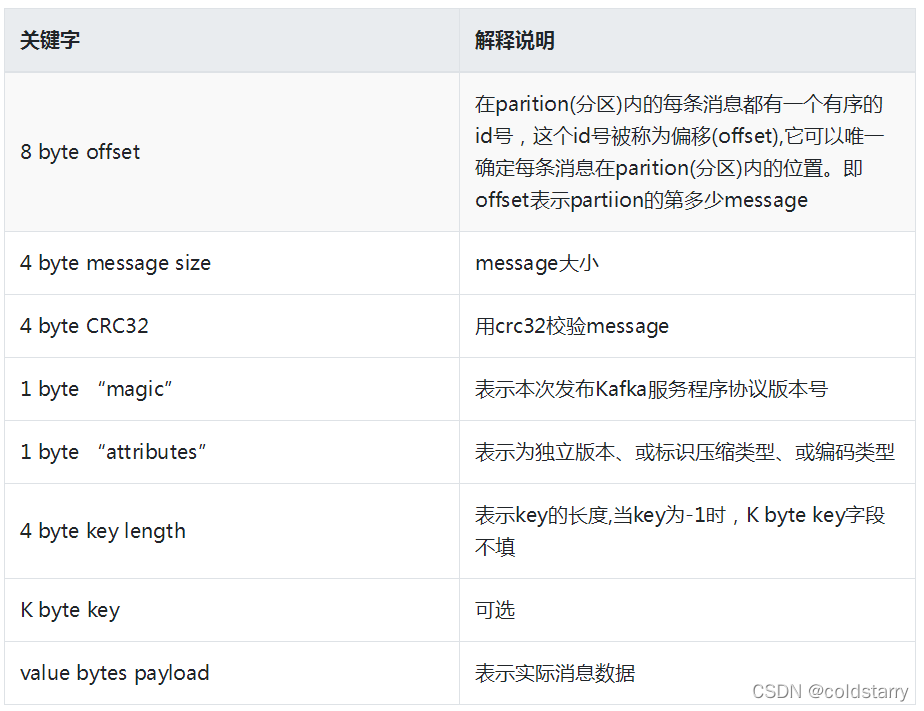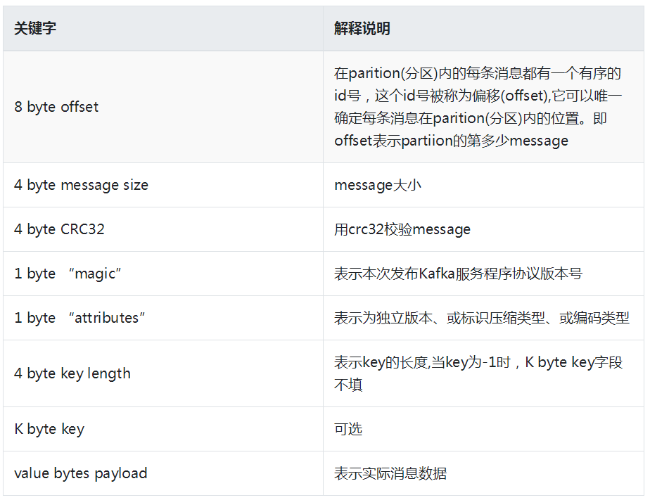 数据文件中并不是直接存储数据,而是通过许多的message组成,message包含了实际的消息数据