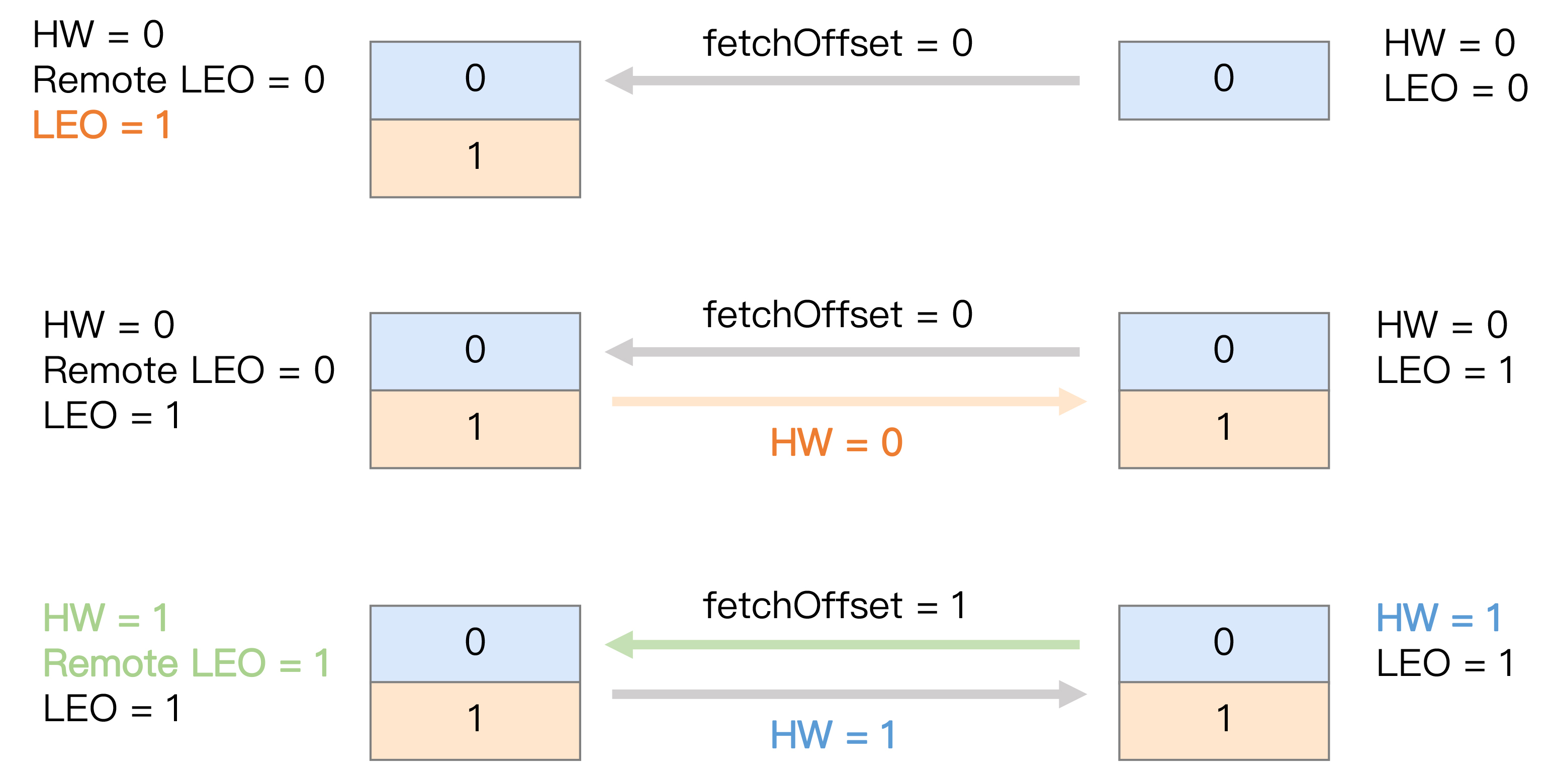 我们再来看看刚刚的那张图,图中有一个叫 Purgatory 的组件,这是 Kafka 中著名的“炼狱”组件。它是用来缓存延时请求(Delayed Request)的。所谓延时请求,就是那些一时未满足条件不能立刻处理的请求。比如设置了 acks=all 的 PRODUCE 请求,一旦设置了 acks=all,那么该请求就必须等待 ISR 中所有副本都接收了消息后才能返回,此时处理该请求的 IO 线程就必须等待其他 Broker 的写入结果。当请求不能立刻处理时,它就会暂存在 Purgatory 中。稍后一旦满足了完成条件,IO 线程会继续处理该请求,并将 Response 放入对应网络线程的响应队列中