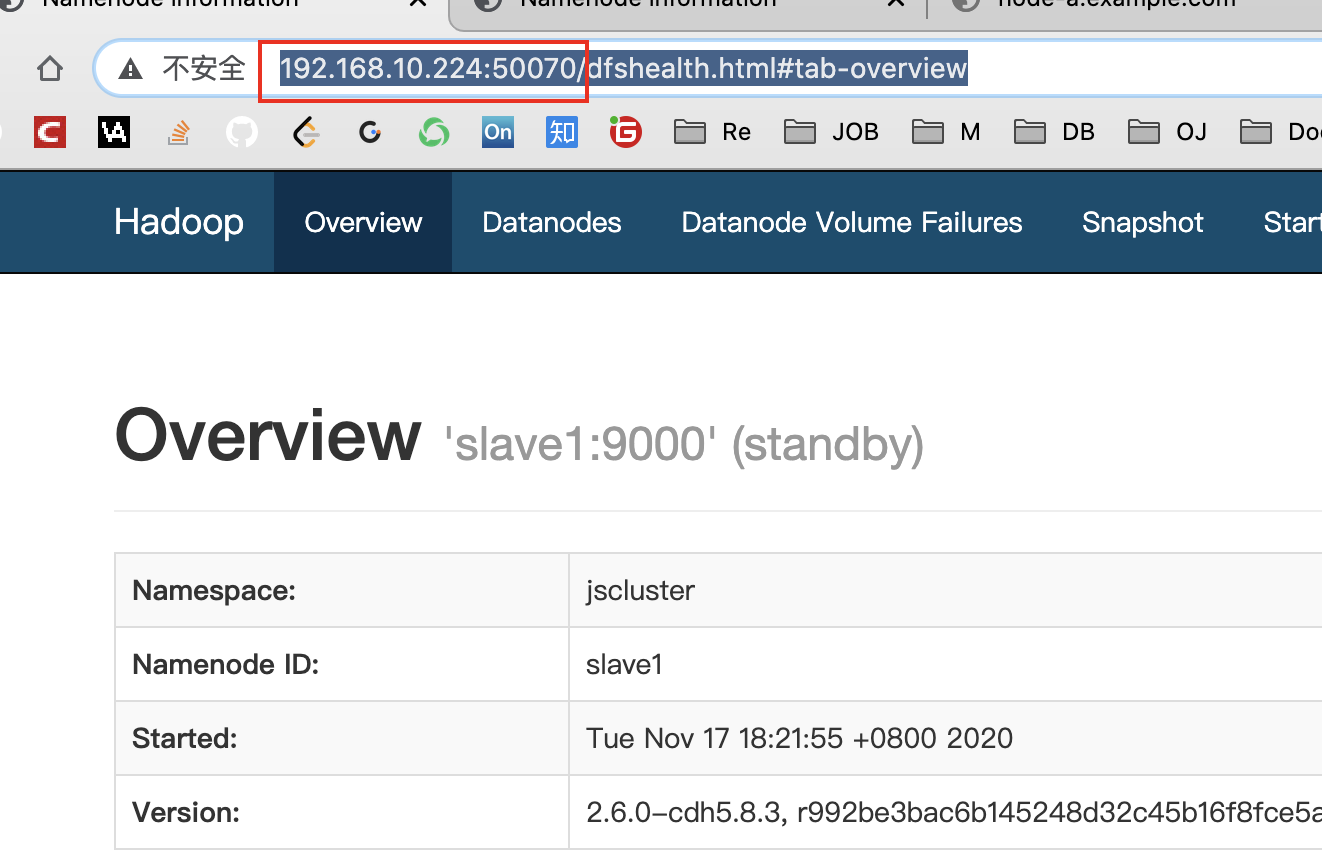7、访问master-ip:50070 web网页 - active ,slave1-ip:50070 web网页 - standby
