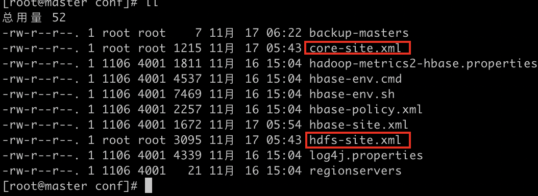 1、复制hadoop/conf/core-site.xml、hadoop/conf/hdfs-site.xml至hbase/conf