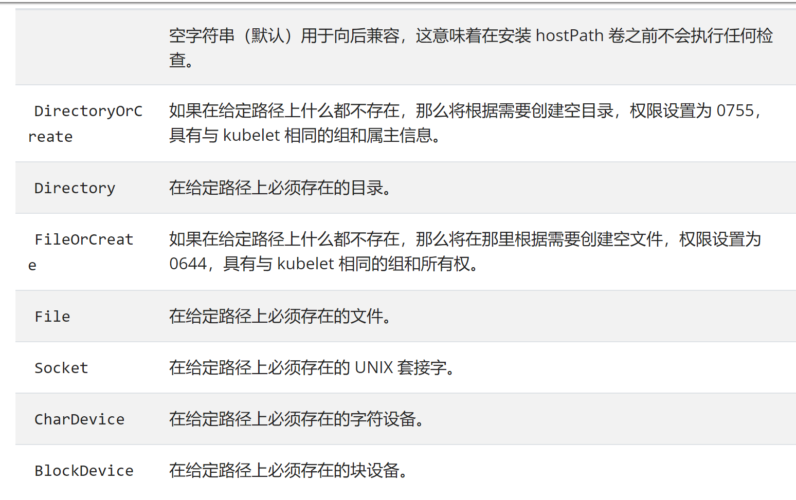 -hostPath类型则是映射node文件系统中的文件或者目录到pod里,在使用hostPath类型的存储时,也可以设置type字段,支持类型文件,目录,file,Sochet,CharDevice和BlockDevice