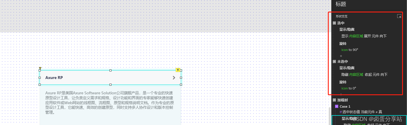 1. 设置 点击组合 交互,点击时设置选中 标题