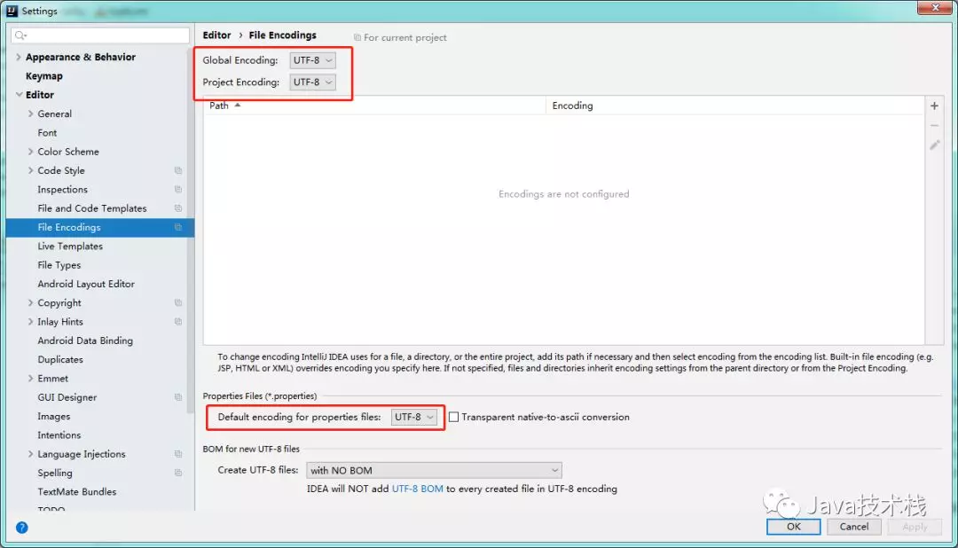 Settings > Editor > File Encodings > Global Encodings & Project Encodings 设置为: