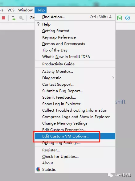 idea > Help 菜单 > Edit Custom VM Options…菜单,编辑配置文件,在末尾添加: