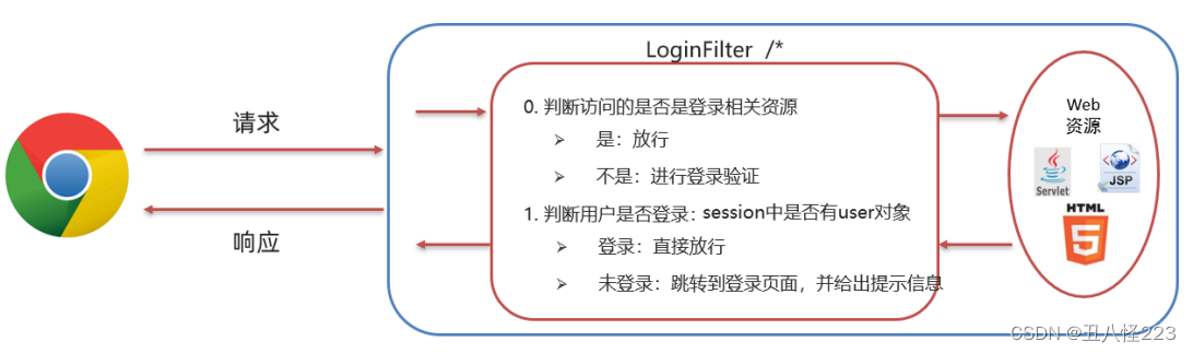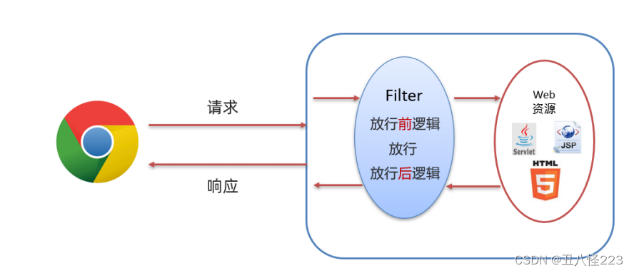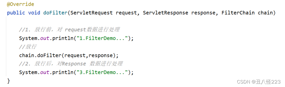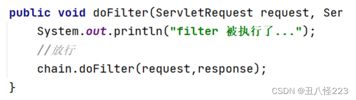 上述代码中的 chain.doFilter(request,response) ; 就是放行,也就是让其访问本该访问的资源。