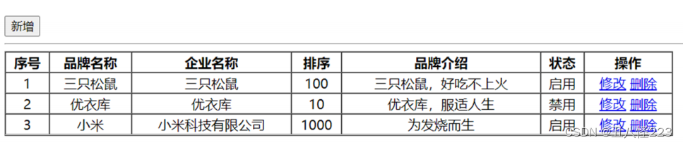 查询所有 功能和 添加品牌 功能就全部实现,大家肯定会感觉前端的代码很复杂;而这只是暂时的,后面学习了 vue 前端框 架后,这部分前端代码就可以进行很大程度的简化。