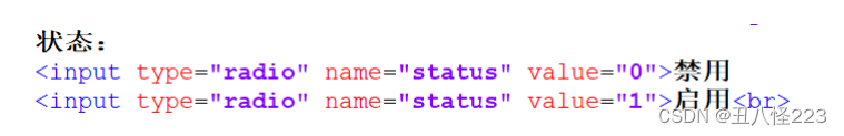 <input type = "radio" name = "status" value = "1" > 启用 <br>