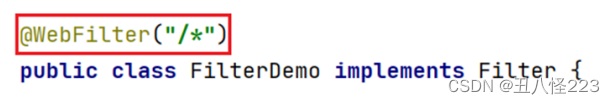 拦截路径表示 Filter 会对请求的哪些资源进行拦截,使用 @WebFilter 注解进行配置。如: @WebFilter(" 拦截路径 ")