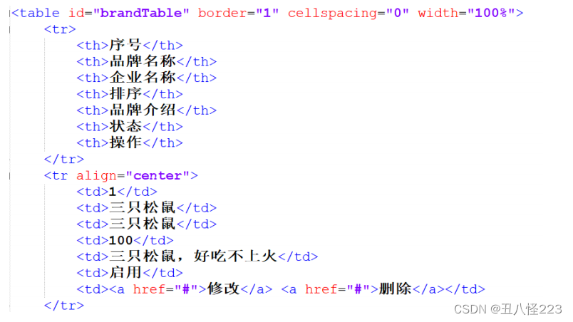 <table id = "brandTable" border = "1" cellspacing = "0" width = "100%" >