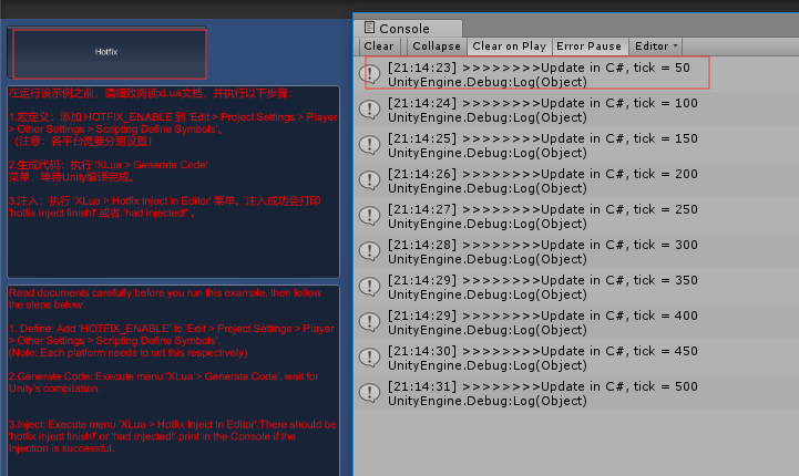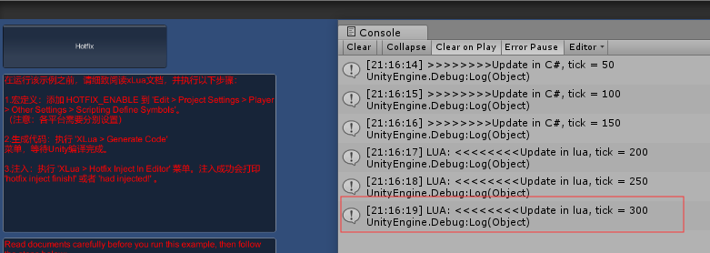点击Hotfix按钮,可以看到日志打印已经改为lua