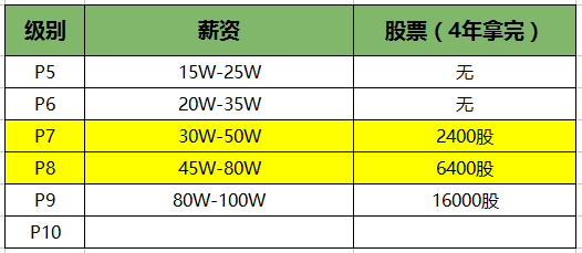 也就是说做到P7或者P8这个级别就差不多达到年薪40W的范围了。