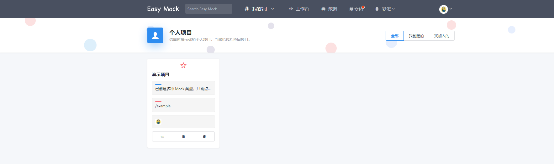 6、具体操作可以参考官方文档(https://www.easy-mock.com/docs)里面写的很详细。