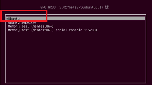 1)打开系统后,在BIOS引导界面选择菜单中,点击“Ubuntu”,“e”键进入编辑模式。
