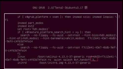 2)在出现的编辑项里,在GRUB解析内核的参数末尾给出引导运行级别,3