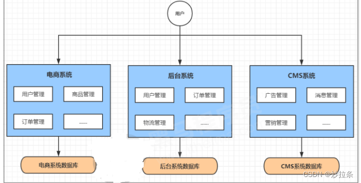 比如说一个电商系统,里面会包含很多用户管理,商品管理,订单管理,物流管理等等很多模块, 我们会把它们做成一个web项目,然后部署到一台tomcat服务器上。