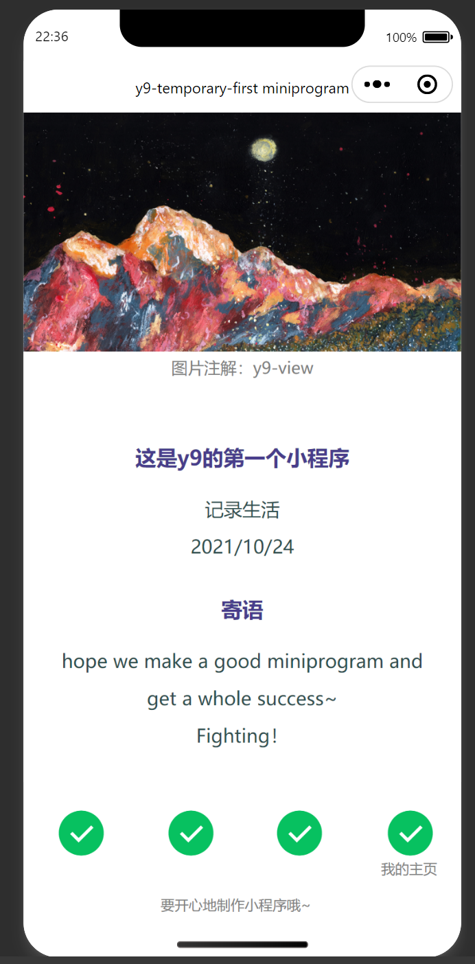 <view style="width: 728rpx; height: 72rpx; display: block; box-sizing: border-box; left: NaNrpx; top: NaNrpx">要开心地制作小程序哦~