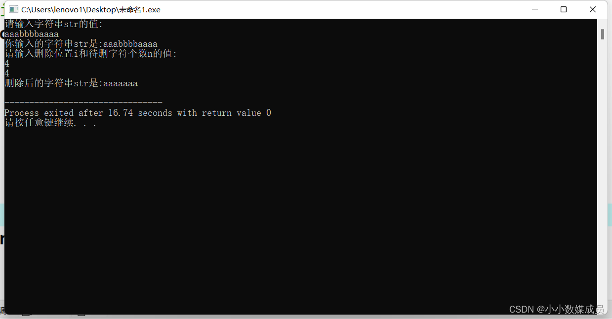 printf("请输入删除位置i和待删字符个数n的值:\n");