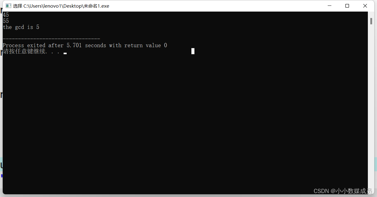 4.用辗转相除法求两个整数的最大公约数。(使用while循环实现)