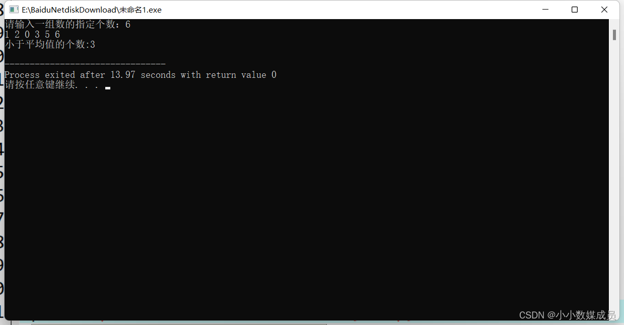 9.求一批数中小于平均值的数的个数。(使用for循环实现)(同类型题:求一批正整数中最大的偶数或奇数。或者 求一组数中最小的数或者最大的数)