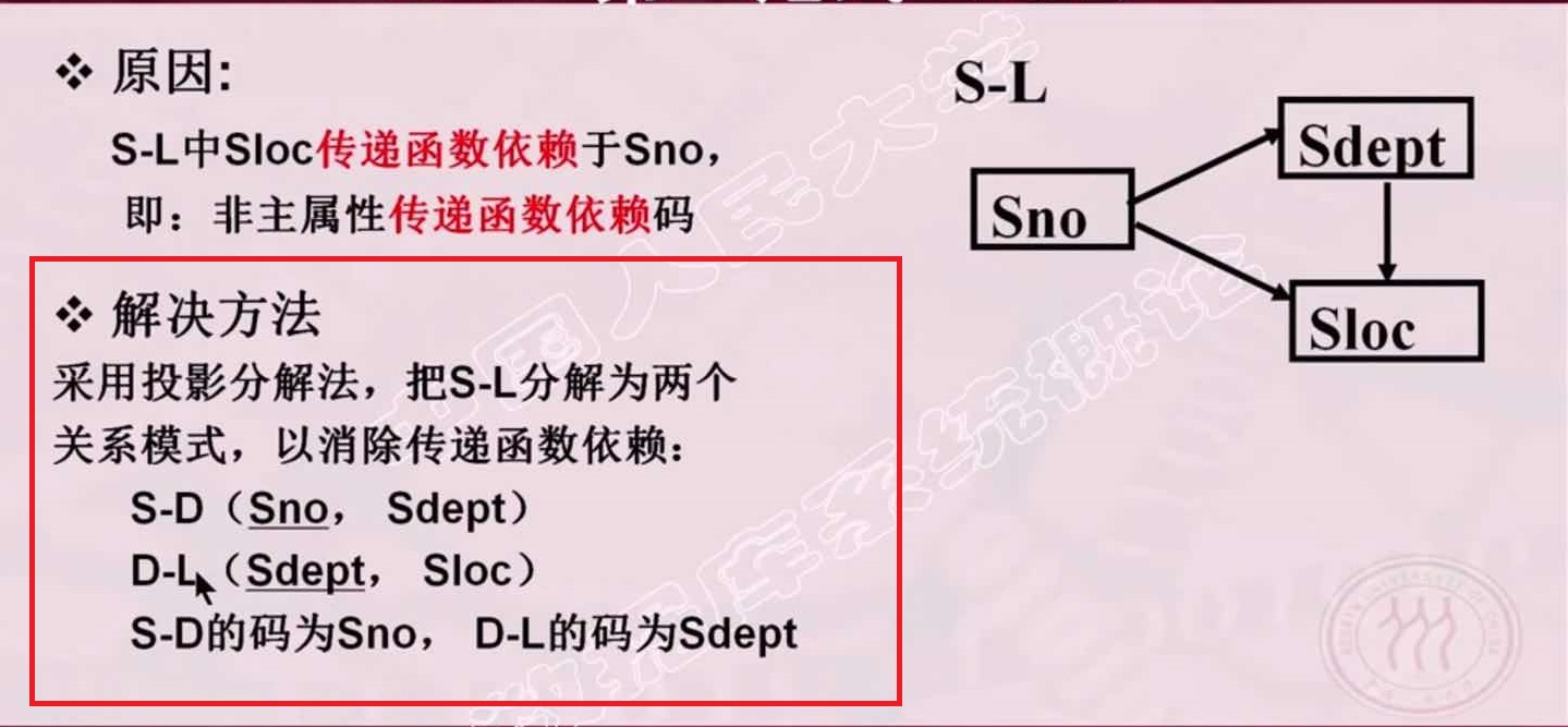 这样的传递依赖使Sloc不能随意修改,Sdept不能随意删除等等,存在冲突!