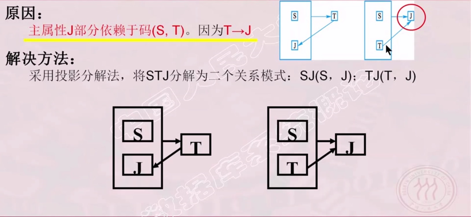 可以使用投影分解法修改为BC范式,消除传递依赖,如下图小方块↓↓↓