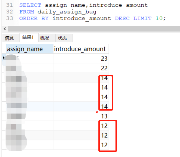 现在,我们需要根据这张表查询到单日引入缺陷数量前十的人员,如果引入数量一样多,不去重,全部查询出来。