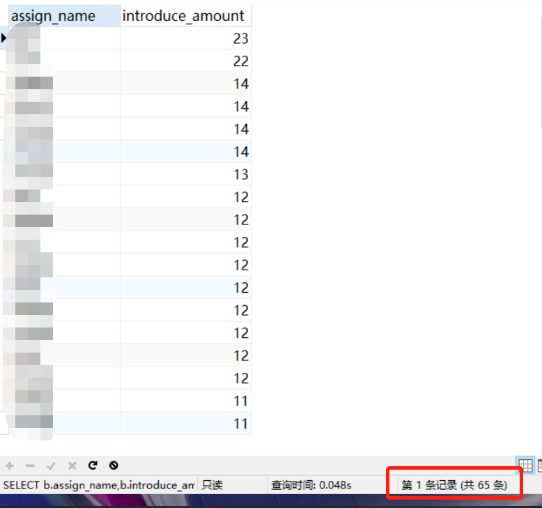 (2)查到前10的所有引入数量,然后对原始表用 in 过滤