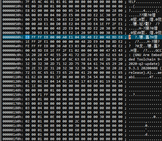 0000 00474343 3a202847 4e552041 726d2045 .GCC: (GNU Arm E