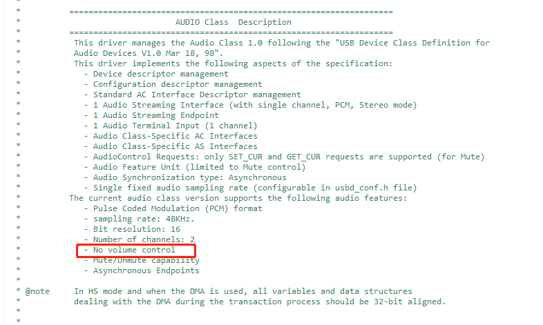 先打开usbd_audio.c, 看生成的底层驱动特性。