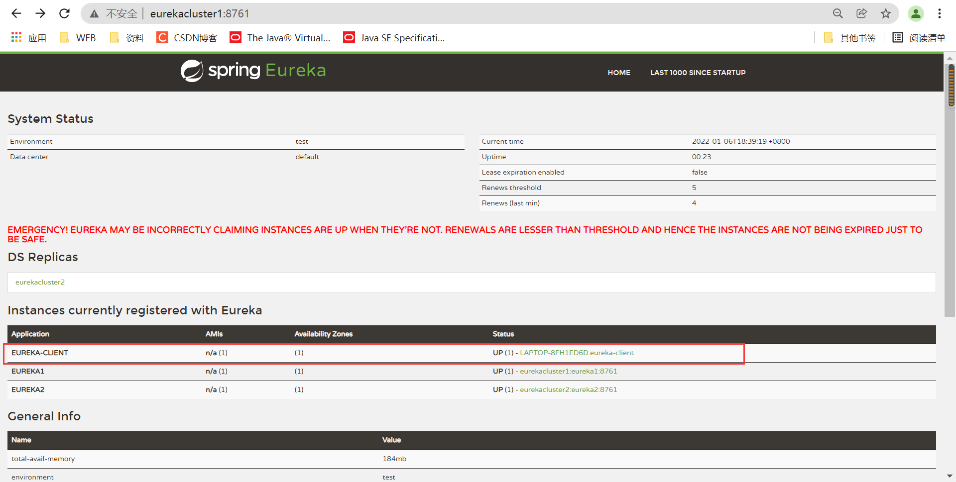 启动客户端观察eureka集群