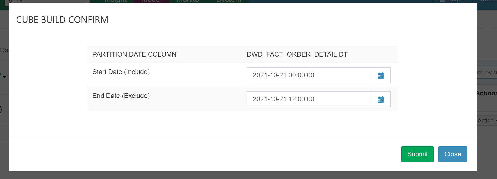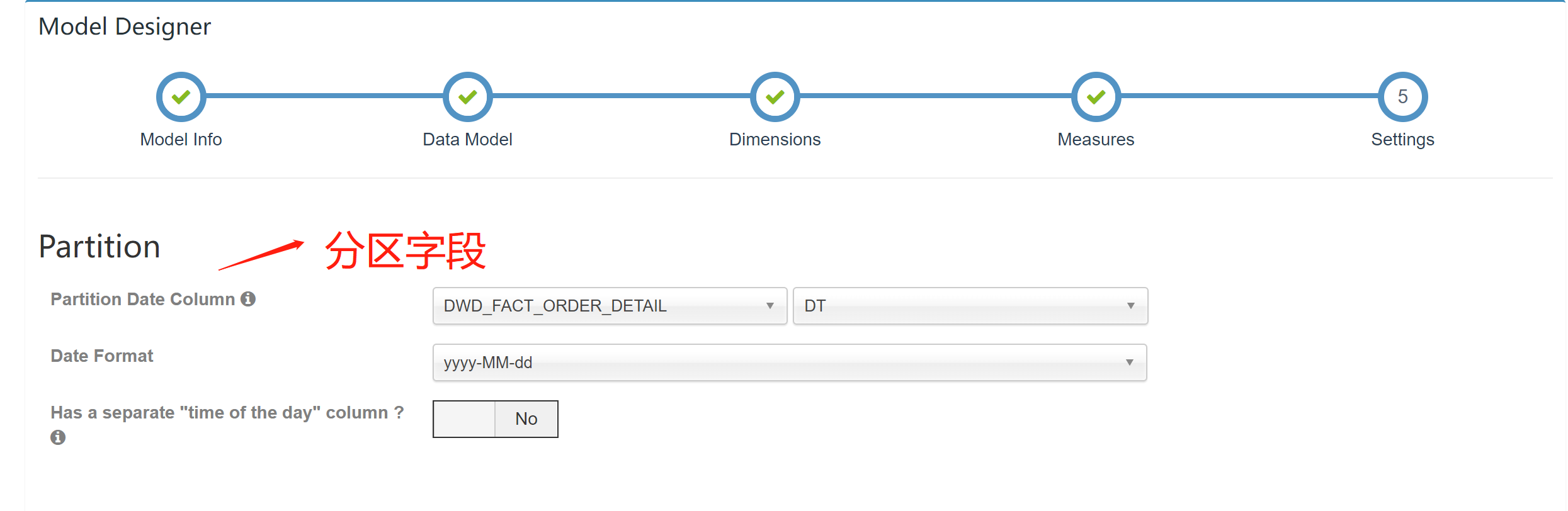 指定事实表分区字段(仅支持时间分区),点击Save按钮,model创建完毕