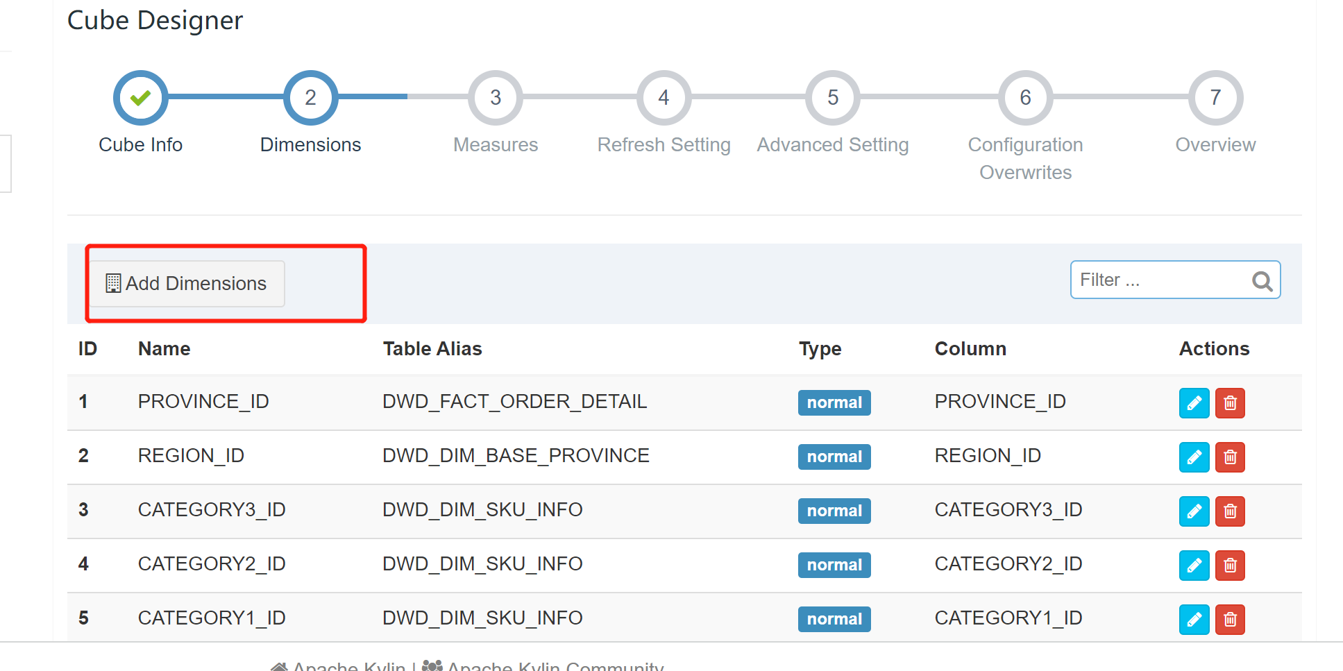 方案一:在hive中创建维度表的临时表,该临时表中只存放维度表最新的一份完整的数据,在kylin中创建模型时选择该临时表作为维度表。