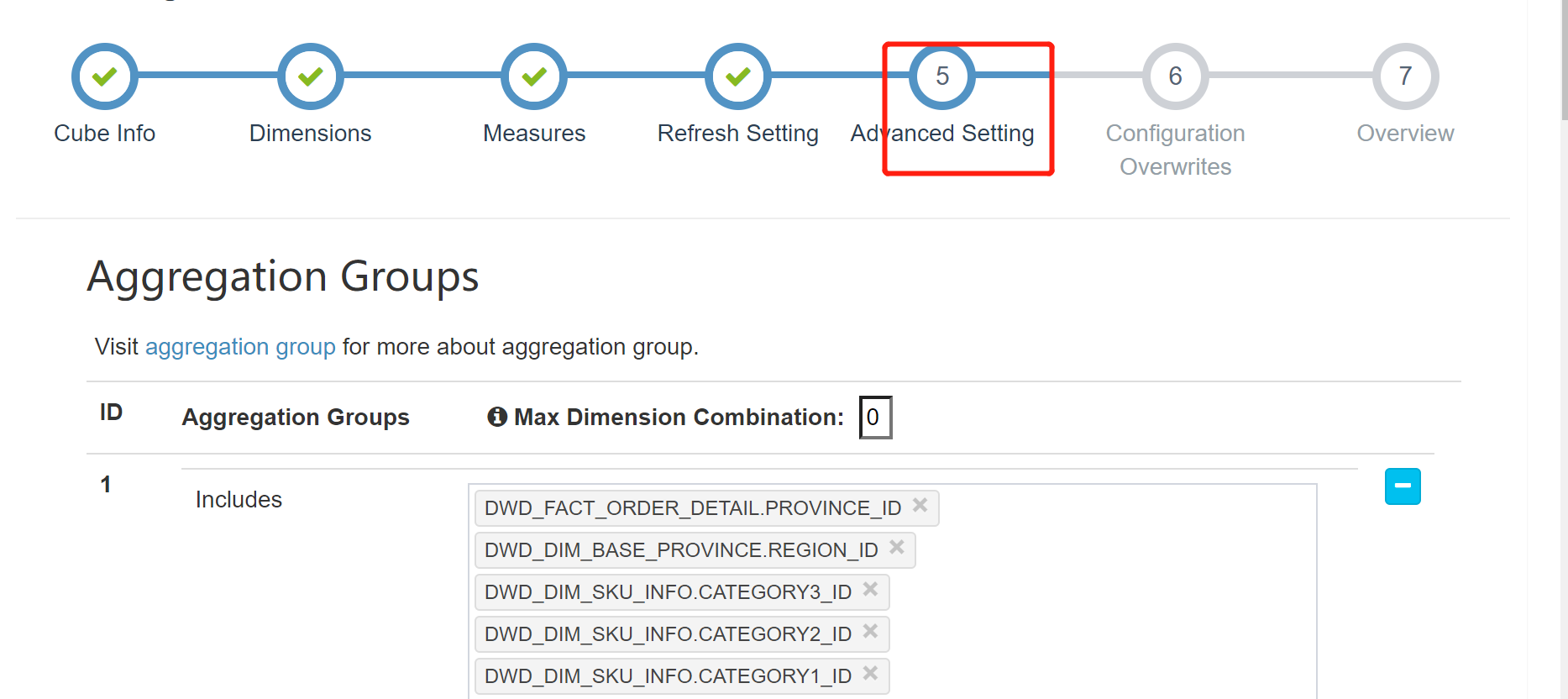 cube自动合并设置,cube需按照日期分区字段每天进行构建,每次构建的结果会保存在Hbase中的一张表内,为提高查询效率,需将每日的cube进行合并,此处可设置合并周期。