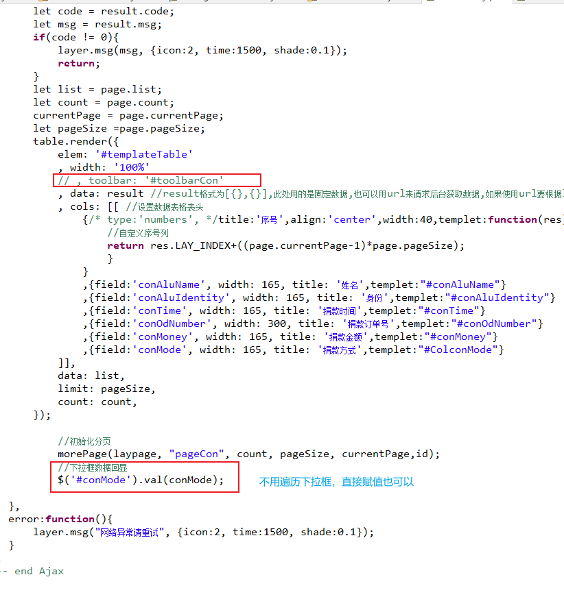 在每次改变工具栏中下拉框的数据,进入事件下拉框值改变,发送ajax获取数据,导致数据表格更新。但我们数据表格更新会刷新整个数据表格,其中包括了我的toolbar工具栏,以致于此方法无用。