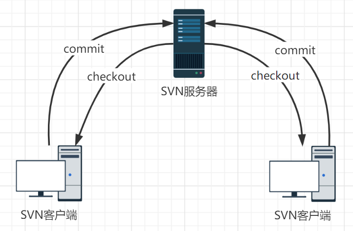客户端 从服务器检出(checkout)指定路径上的版本文件到本地,修改了之后再提交(commit)到服务器上,当其他的客户端再次检出或更新的时候,就能获取得到之前客户端提交的修改