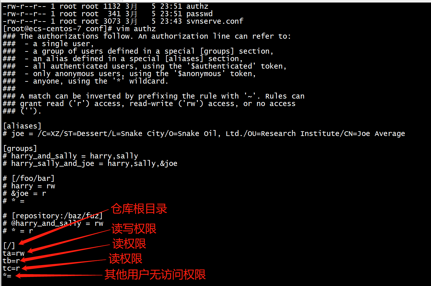 [root@ecs-centos-7 tt]# cd svn/conf/