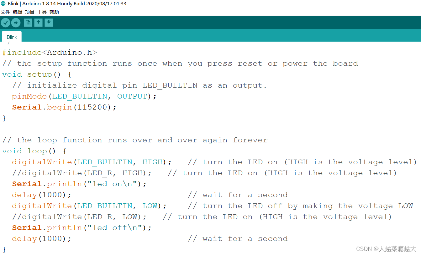 点开示例->1.BASIC->blink,