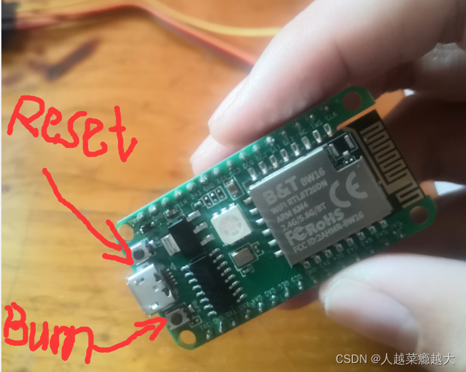 BW16需要手动按键操作来进入下载模式:
