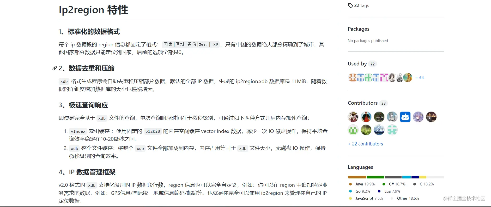 一个准确率 99.9% 的离线 IP 地址定位库,0.0x 毫秒级查询,ip2region.db 数据库只有数MB,提供了 java,php,c,python,nodejs,golang,c# 等查询绑定和Binary,B树,内存三种查询算法。