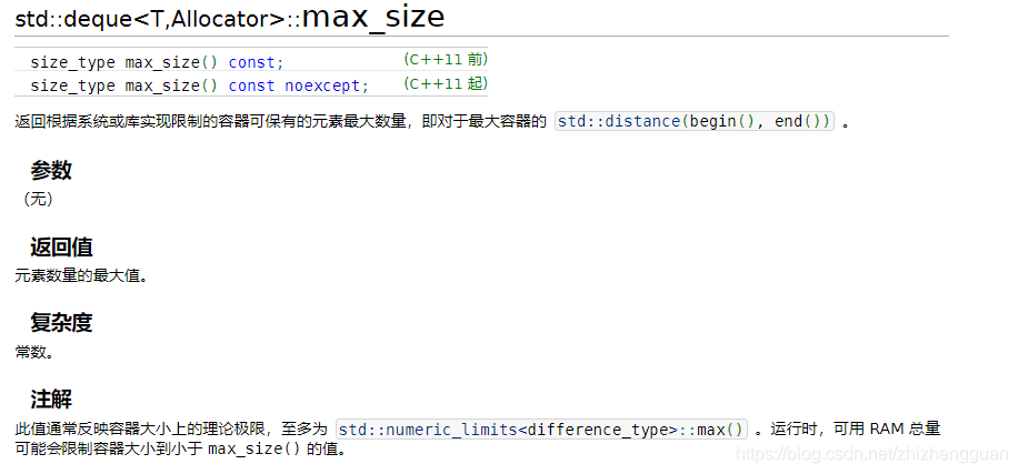 std::cout << "Maximum size of a 'deque' is " << s.max_size() << "\n";