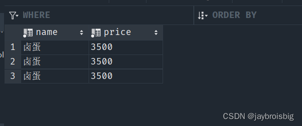 数据库插入三条数据,name:卤蛋,price:3500