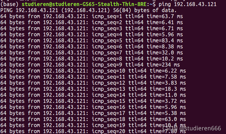 ping studieren-GS65-Stealth-Thin-8RE通信结果如下显示为成功,