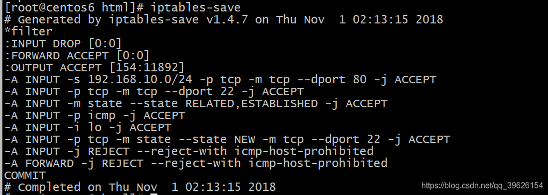 # iptables -I INPUT -s 192.168.10.0/24 -p tcp --dport 80 -j ACCEPT#允许haproxy对80端口的访问