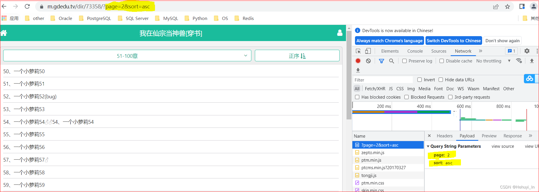 上面的功能其实还不太常用,最常用的可以处理翻页问题,来看这个网页,随便找一本小说 https://m.gdedu.tv/dir/73358/?page=2&sort=asc