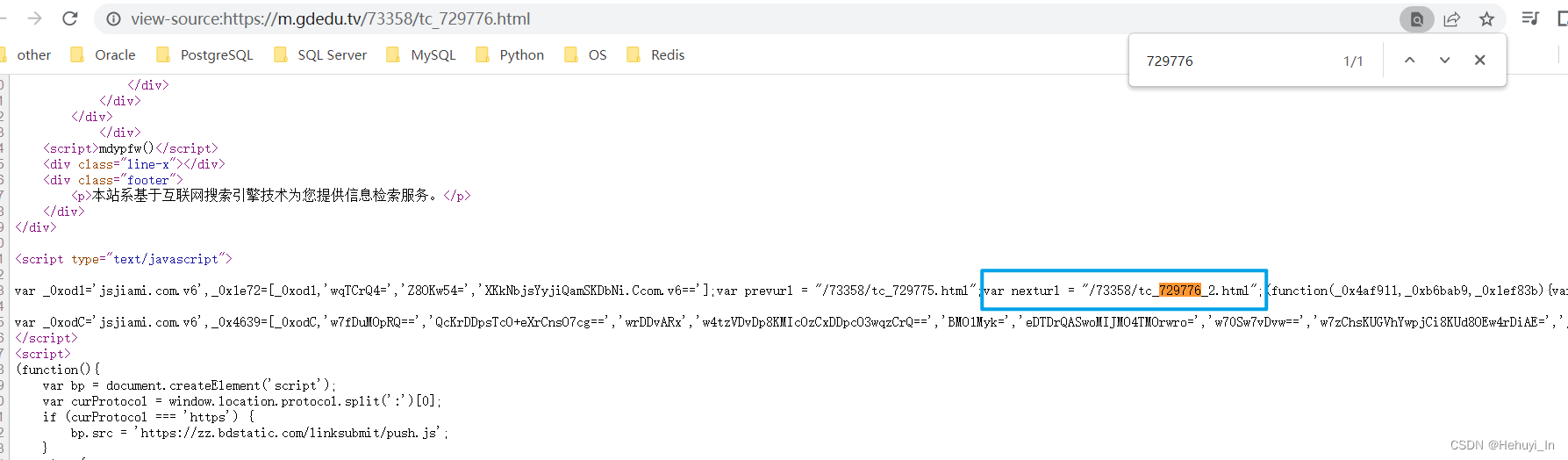 查看源码,搜729776,这玩意在JavaScript标签里。但是没关系,只要你会匹配上面的超链接,你自然就会匹配下面这个,具体我们以后再看~